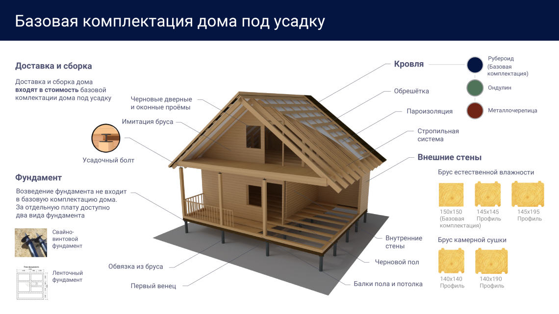 Состав комплекта для дома из бруса