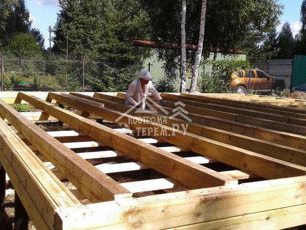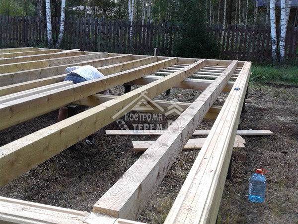 - выполняется обвязка из бруса для дальнейшего монтажа стен.
