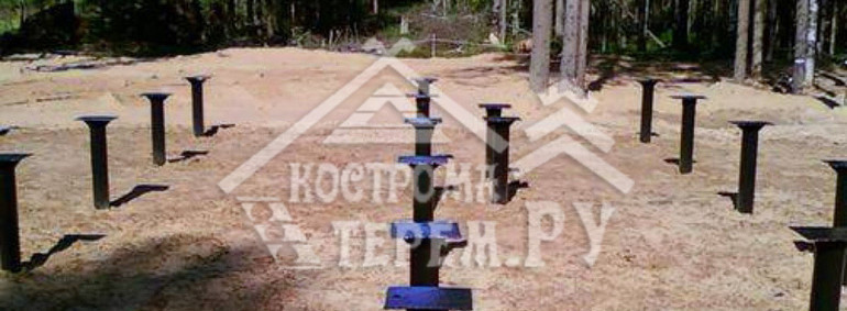 Для своих домов компания «КостромаТерем» предлагает ленточные и свайно-винтовые фундаменты.