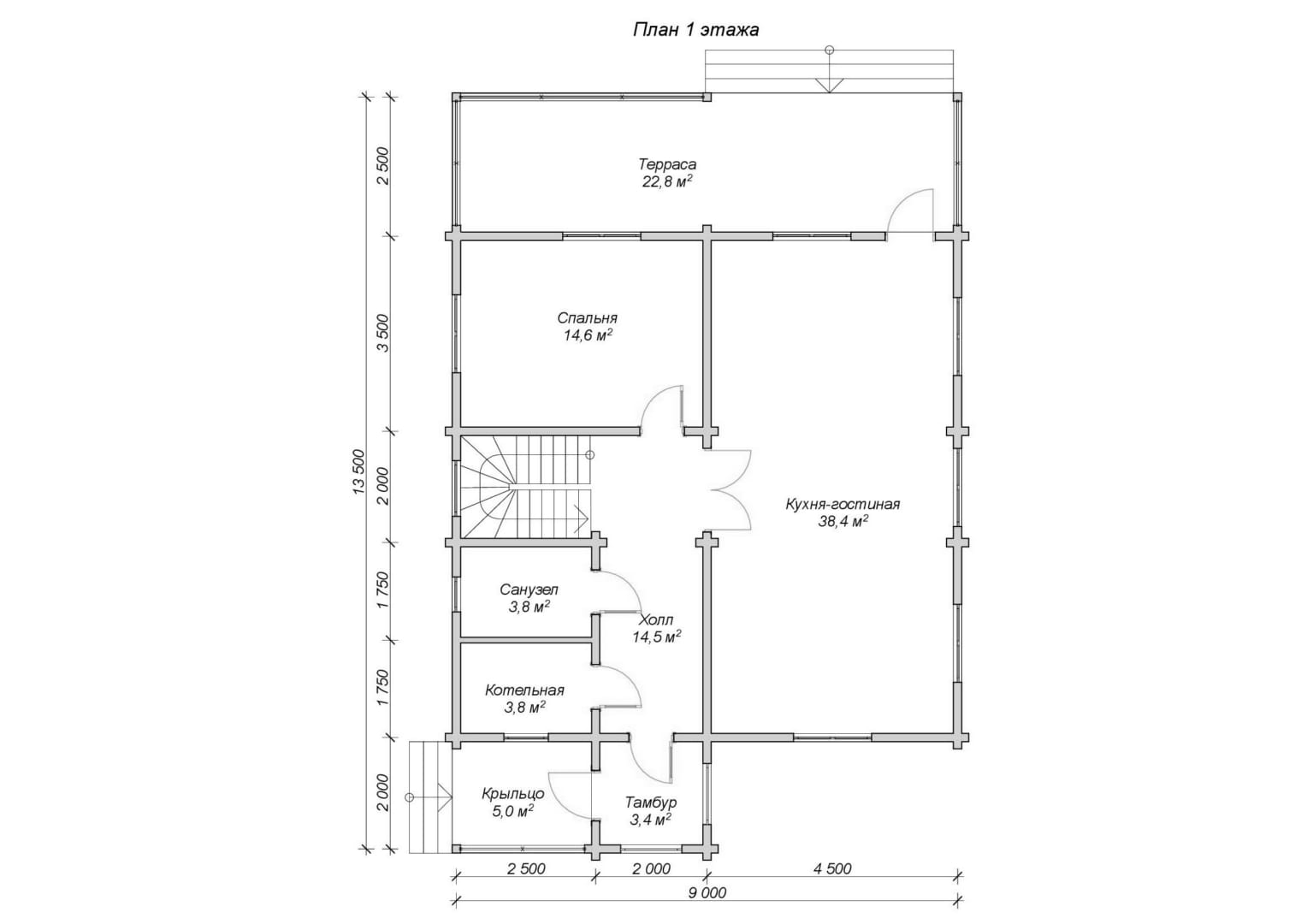 1.3. Высота 1 этаж – 2,70 метра. Высота 2 этаж – 2,50 метра. АТТИКОВАЯ СТЕНА – 1,20-1,50 метра. |
