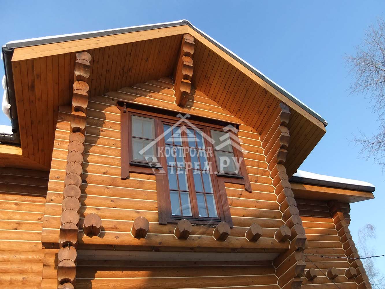 Декоративная отделка обсадочной колоды подразумевает ее покраску под цвет окна, или резные элементы. Обсадная колода никаким образом не ухудшает внешний вид дома, а наоборот, делает его стильным и качественным.