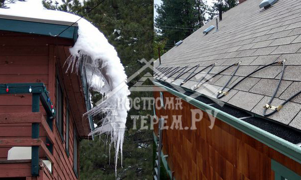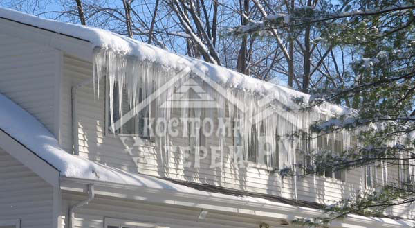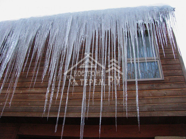 Как известно, зимой на кровле образуется наледь. Это приводит к тому, что кровля портится, теряет вид, а со временем могут появиться протечки. Водосточная система портится, трубы и желоба деформируются, может разрушиться крепление водостоков. А если с крыши сорвется сосулька, она может упасть на голову.
