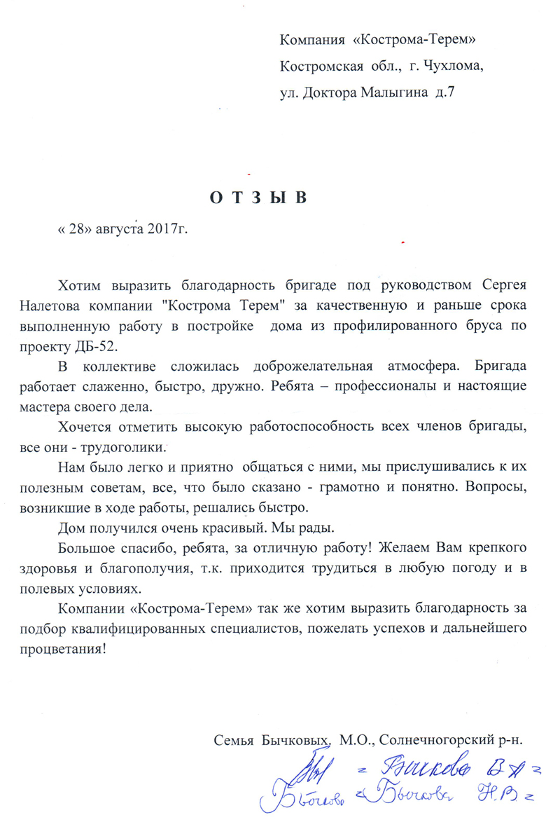 Отзыв о строительстве дома по проекту ДБ-52