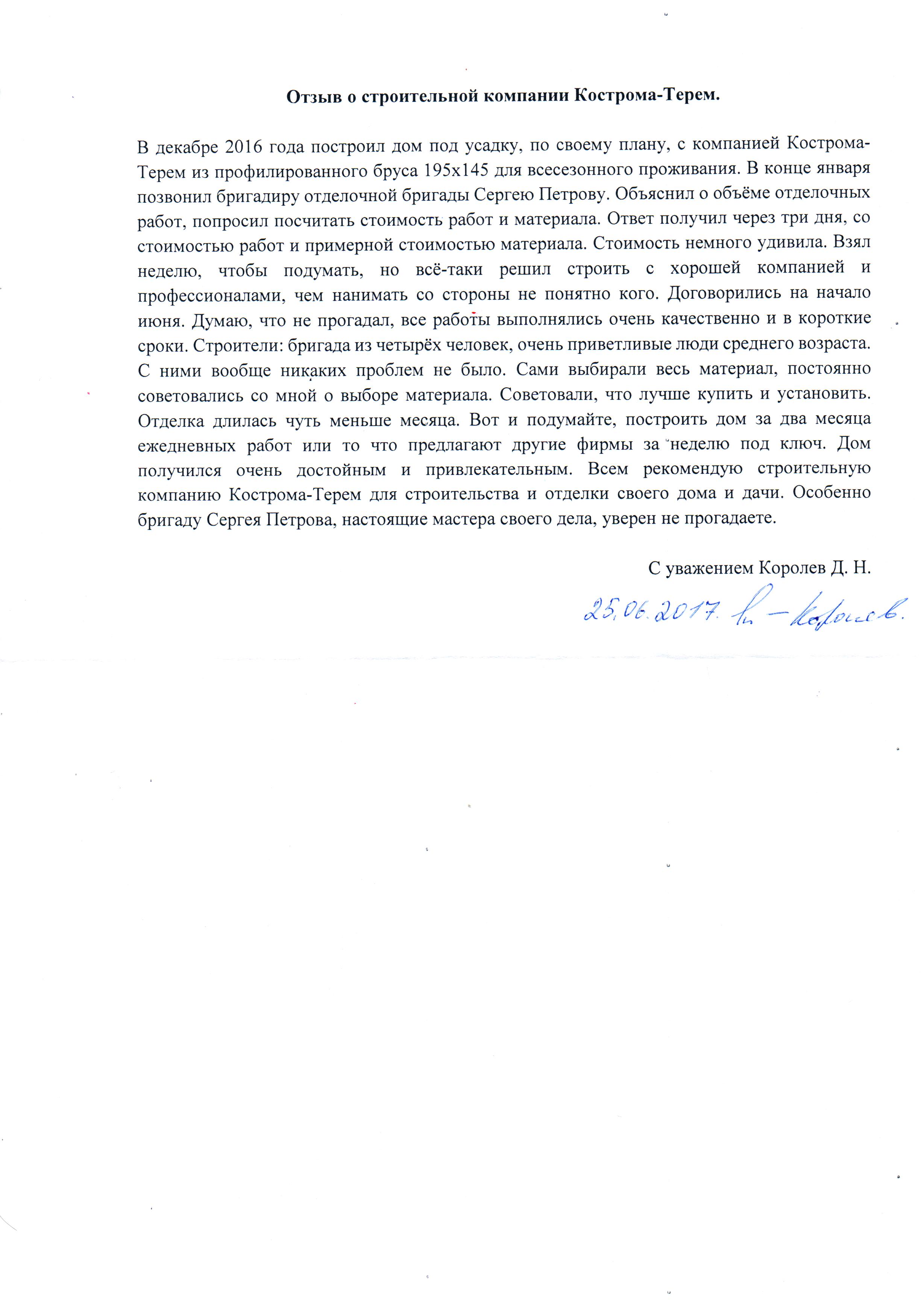 Отзыв Королев Д.Н.