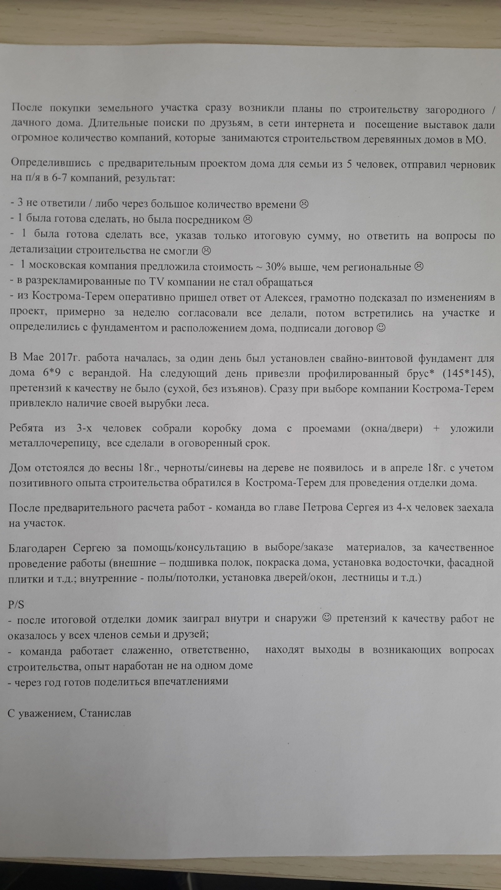 Отзыв по строительству дома в Московской области